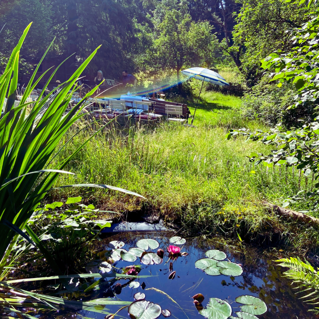 Unser diesjähriger Sommer Tag Traum war ein voller, sonniger und lehrreicher Öko- DIY- Workshoptag. Dalia (Miss Planty) stellte mit Besuchenden Naturkosmetik und Waschmittel her, Judith (Waldspiel) bot Kinderprogramm zum Thema „Natur mit allen Sinnen“, Annika (froh und bunter) machte eine Kräuterwanderung durch unseren Garten. Das Kuchenbuffet konnte sich dieses Jahr mehr als sehen lassen, zudem gab es eine Aktion zum gemeinsamen Gärtnern, einen Pflanzen-, Samen-, Klamotten- und Büchertausch, hausgemachte Limo und Zeit im Garten zum Entspannen. Insider munkeln, dass der nächste Begegnungstag/Sommerfest am 25. August 2024 stattfinden soll- aber pssssst, noch nicht verraten.