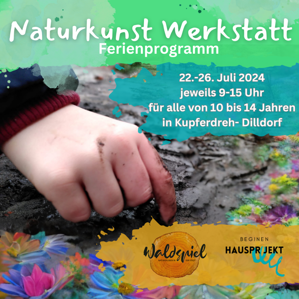 Hast du schon mal eigene Kohlestifte im Lagerfeuer gebrannt oder Farben aus Pflanzen gewonnen? Du magst es draußen zu sein und zu schnitzen? Bei der „Naturkunst-Werkstatt“ verbringen wir 5 Tage gemeinsam draußen und gestalten kleine Kunstwerke aus Naturmaterialien und präsentieren diese am letzten Tag- lade also schonmal deine Familie und Freund:innen ein!
